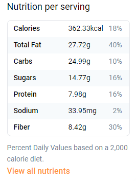 This is a breakdown of the macronutrients in alsī laḍḍūs generated by the Samsung Food app. A full ingredient list and “health score” are available here.